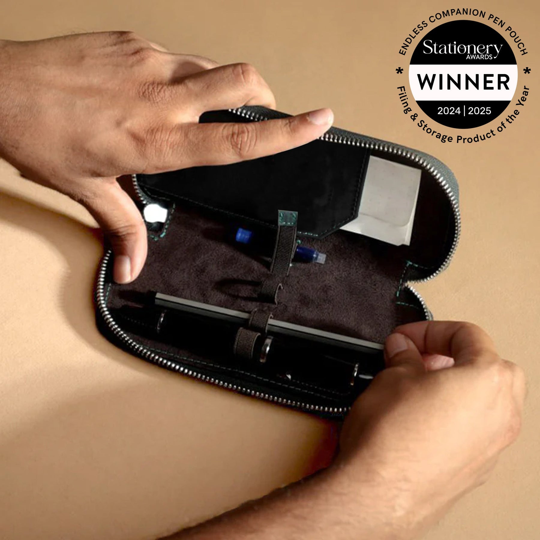 It has always been cumbersome to store pens of varying thicknesses in pen holders, until now. With our revolutionary Adjustable Elastic Band, you can store all your writing instruments snugly. In addition to the 3 Pen Slots, the Companion contains a dedicated slot for an additional refill/cartridge. The left side also includes a document flap with 3 slots for cards. Let the Companion take care of your tools, while you take care of creating!